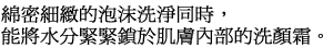 密度極高的細緻泡沫,每一處的肌膚都能徹底潔淨。