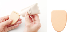 取適量於粉撲或指腹上,再均勻延展至全臉。 (鼻翼、 眼周以及嘴角處塗抹薄薄一層即可。)